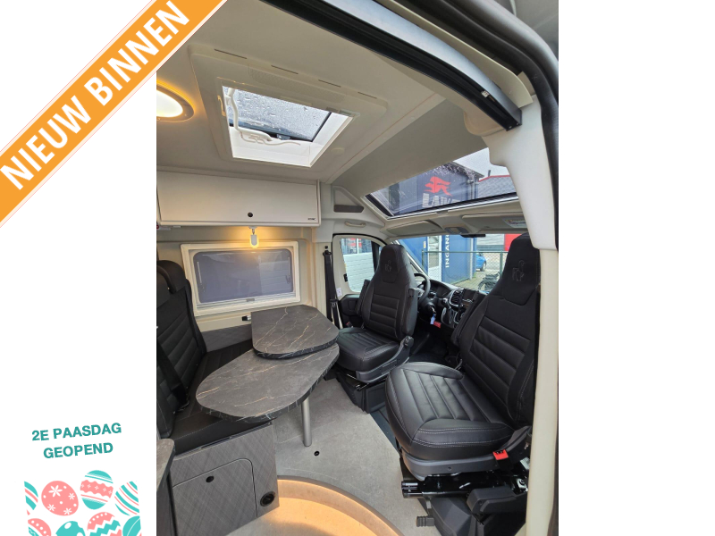 - Bestuurders- en bijrijdersstoel draaibaar in bekleding woonruimte