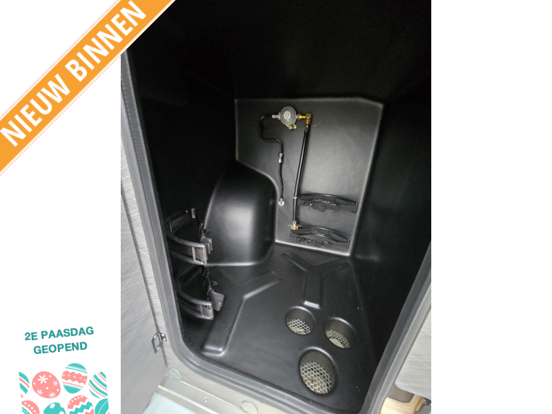 - Opbergruimte voor 2 gasflessen met max. 11 kg vulgewicht