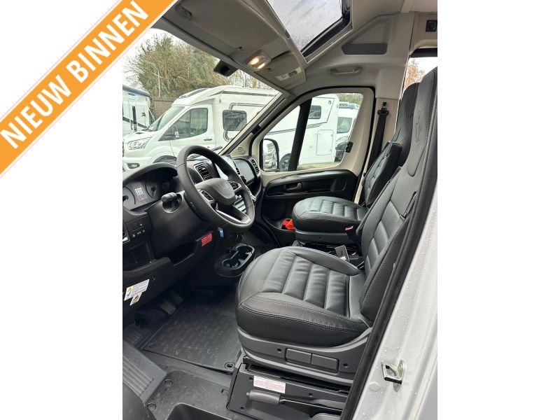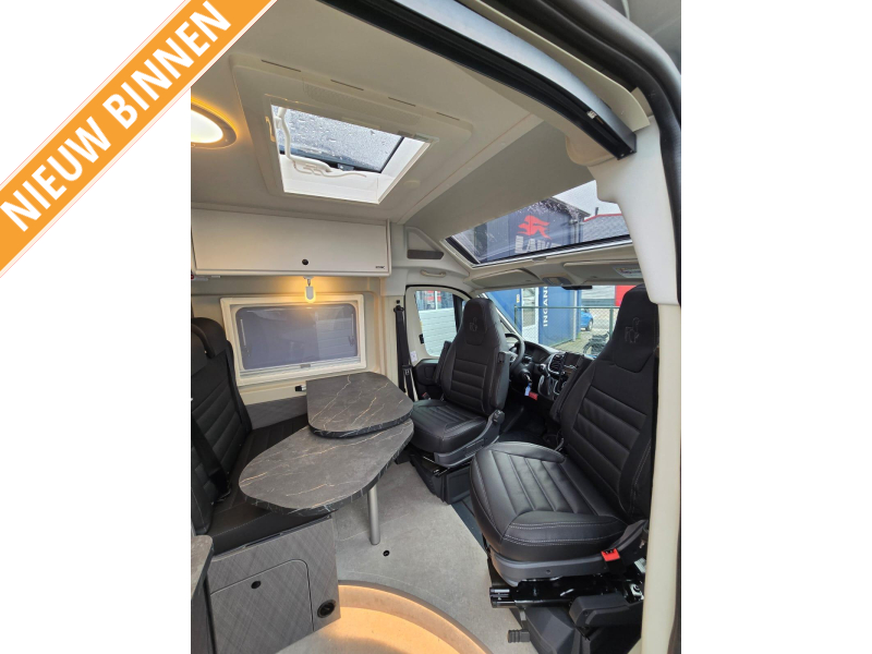 - Bestuurders- en bijrijdersstoel draaibaar in bekleding woonruimte
