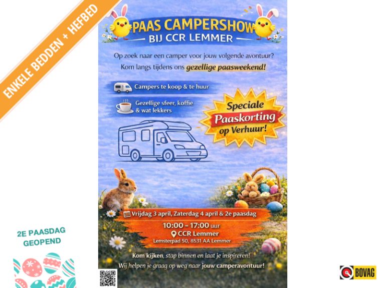 Deze advertentie en de inhoud ervan zijn met de grootste mogelijke zorg samengestelt.Het is echter mogelijk dat de in de gehanteerde advertentietekst bepaalde opties en/of accesoires zijn vermeld die niet op deze specifieke kampeerauto of caravan aanwezig zijn. Er kunnen derhalve geen rechten worden ontleend CCR Lemmer kan nooit aansprakelijk worden gesteld voor de inhoud en volledigheid van de verstrekte informatie.Kilometerstand is afgelezen van de kilometerteller en het rijklaar gewicht is afgelezen van het kentekenbewijs !