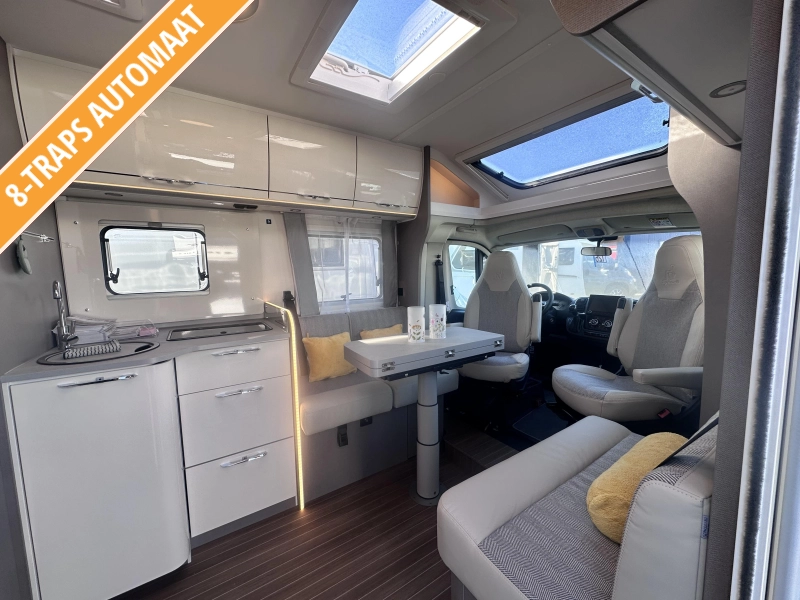 Laat je reizigershart sneller kloppen met de Etrusco T7400 SBC. Het interieur, voorzien van sfeervolle verlichting en een coole materiaalmix, biedt een oase van rust en comfort waar je altijd graag naar terugkeert na een actieve dag. Dit is meer dan een camper, het is jouw mobiele thuis!