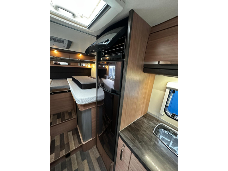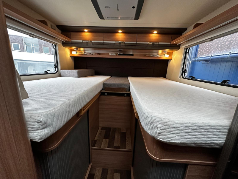 Een rijk uitgeruste camper met opties zoals een Airco in het woongedeelte voor een aangenaam verblijf en luchtvering voor optimaal rijcomfort.