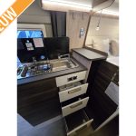 - Keukenupgrade: uitklapbaar keukenwerkblad en verlichte opbergvakken bij de ingang