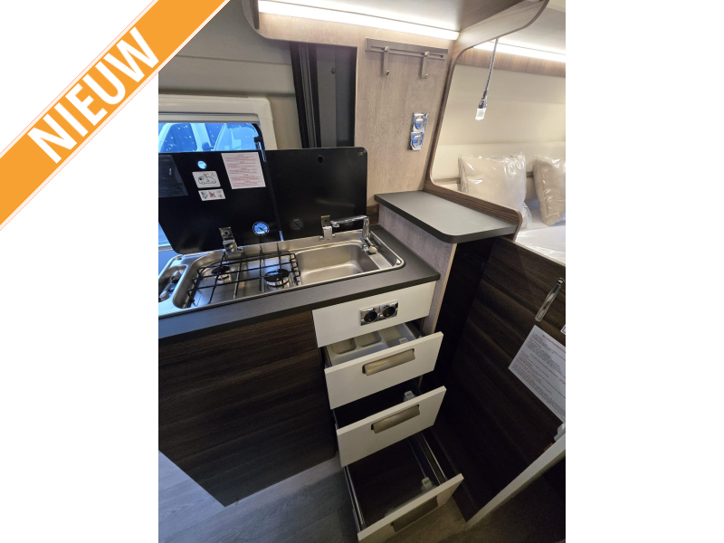 Door zijn compacte formaat in combinatie met het hefdak is het een camper voorzien van alle gemakken waar je overal mee kan komen!