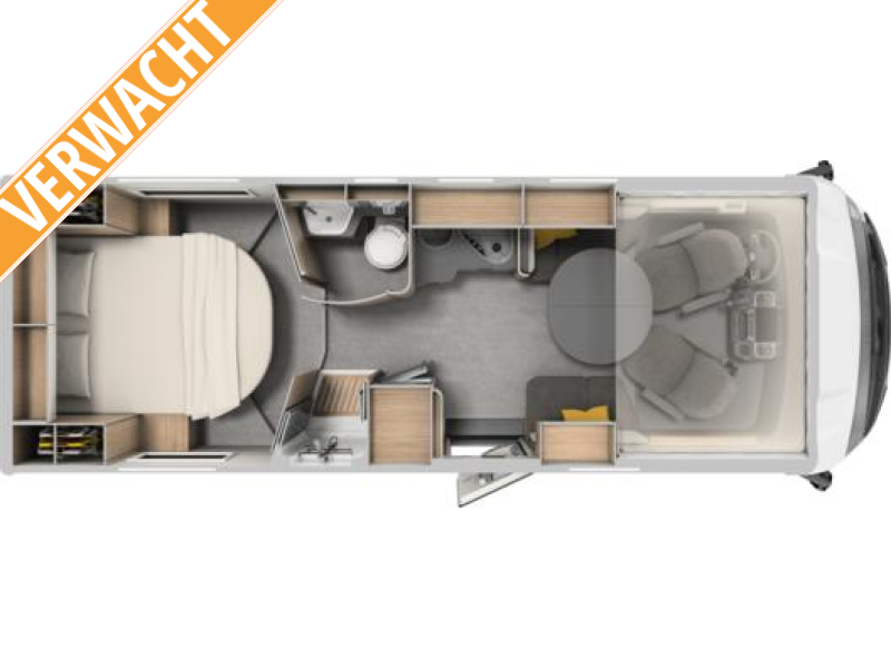 De camper beschikt over een royale lounge, een praktische keuken, een luxe badkamer met aparte douche en een comfortabel Queensbed. Daarnaast zorgt de bedombouw van de zitgroep voor extra slaapplek zonder ruimte verlies overdag. Alles is ontworpen met oog voor detail, ergonomie en comfort, wat deze camper tot een echte premium klasse maakt.