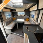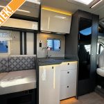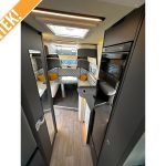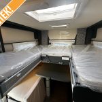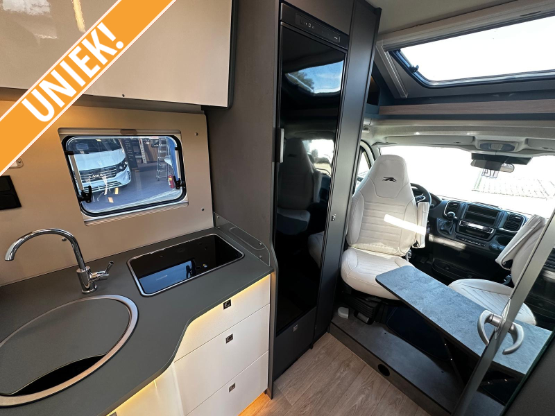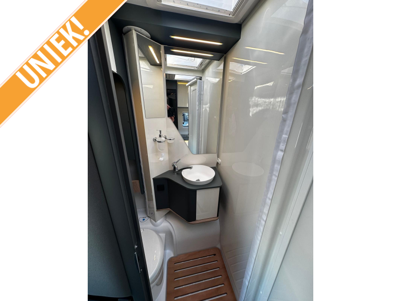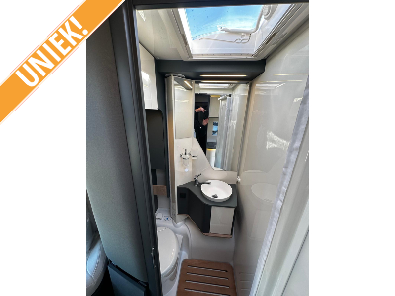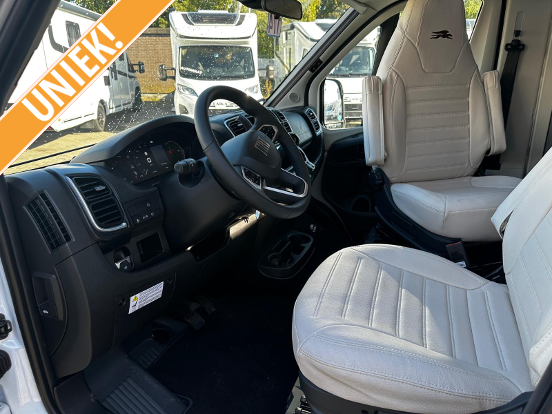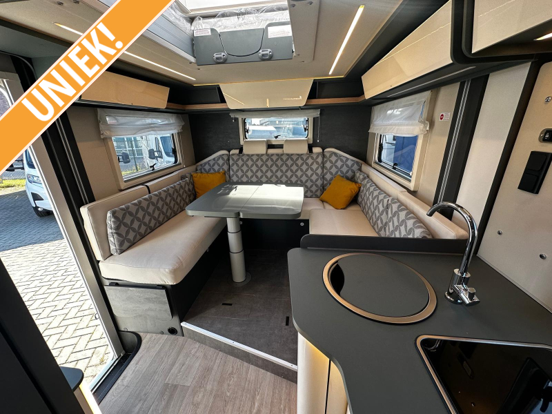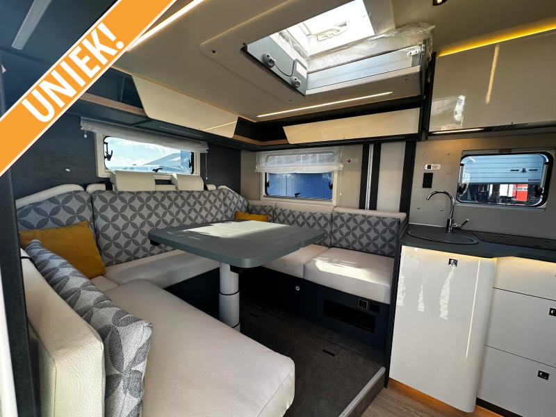 De Kosmo L 105 biedt een unieke indeling die zijn gelijke niet kent op de markt, ontworpen om de leefruimte te maximaliseren en plaats te bieden aan maximaal vier personen tijdens het reizen en tijdens het parkeren. Met een lengte van slechts 599 cm en op de Ducato 35L, is de Kosmo L 105 de perfecte combinatie van compacte buitenafmetingen, vergelijkbaar met die van een camper van, en het comfort van een halfintegraal model ontworpen als een mini-huis op wielen.