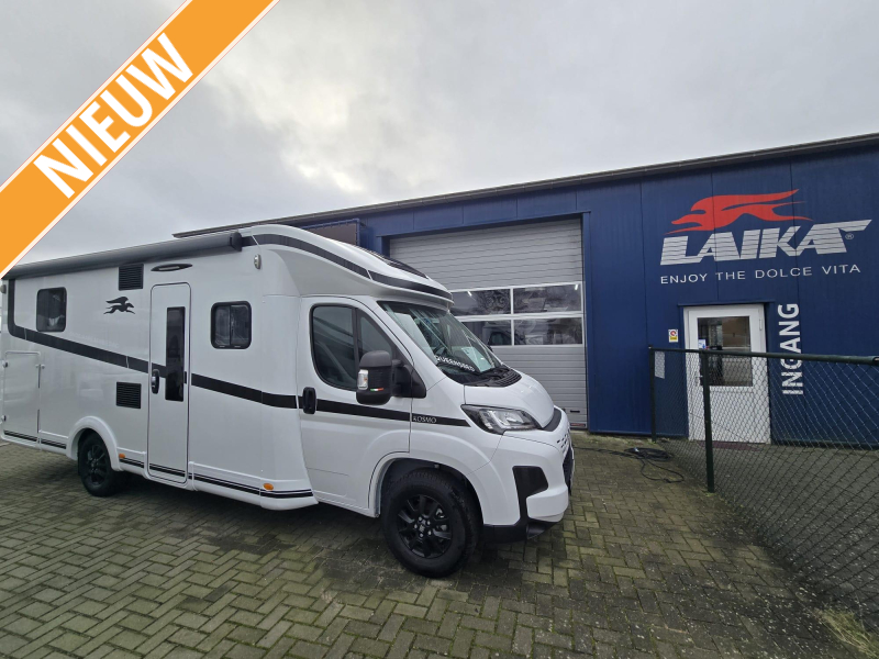 Een Laika Kosmo L412 DS, een moderne en elegante half-integraal camper van het Italiaanse topmerk Laika. Deze camper combineert hoog rijcomfort, slimme indeling en luxe afwerking met de betrouwbaarheid van de Fiat Ducato.