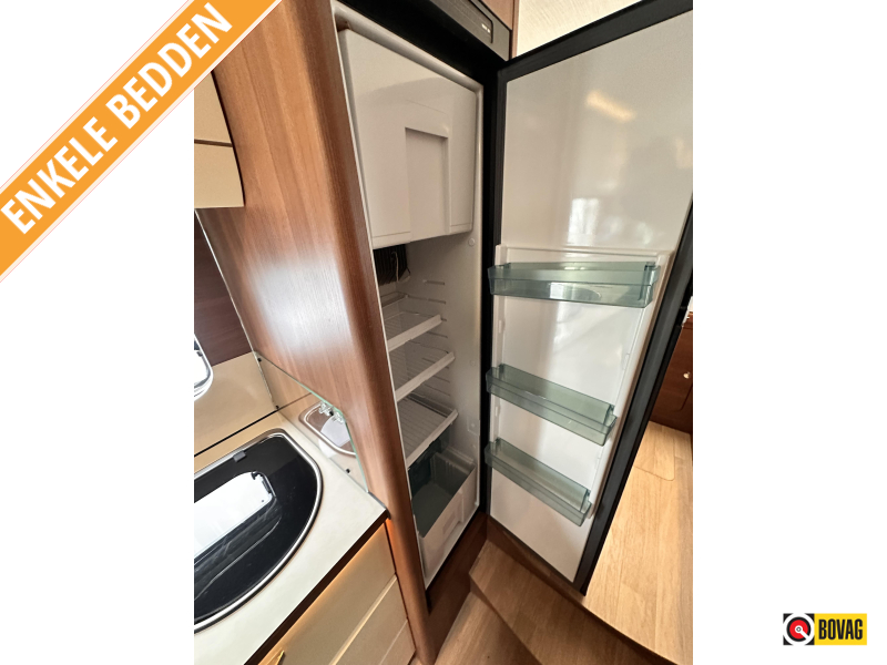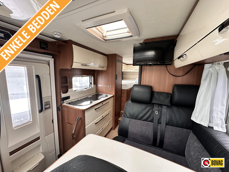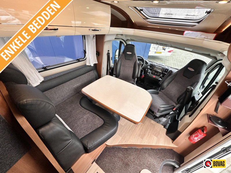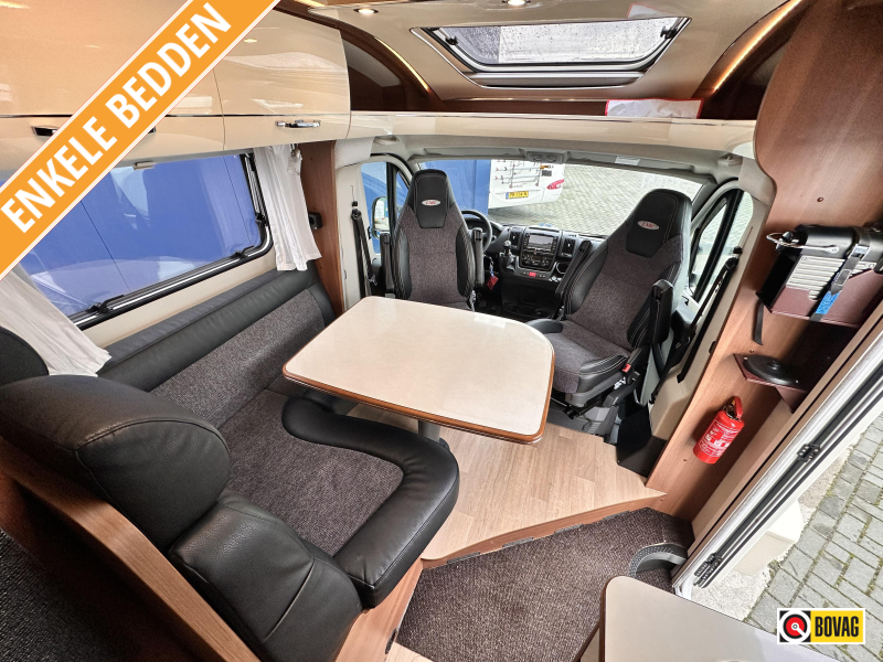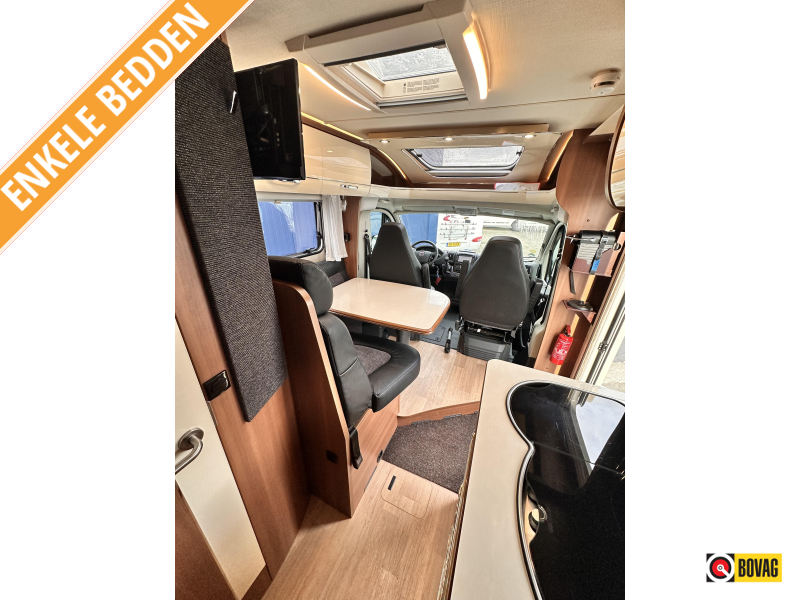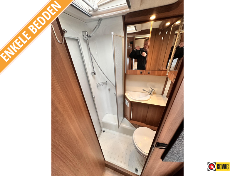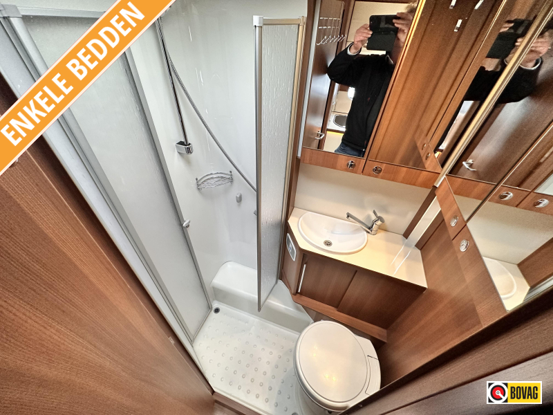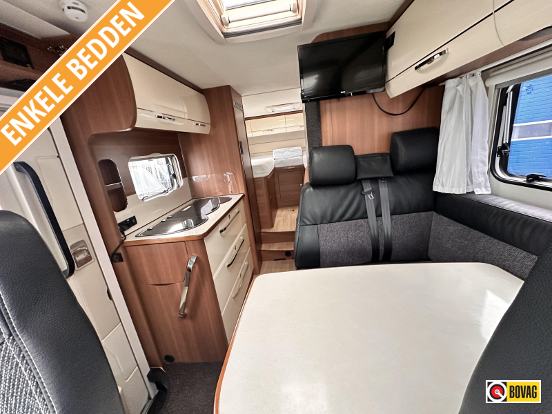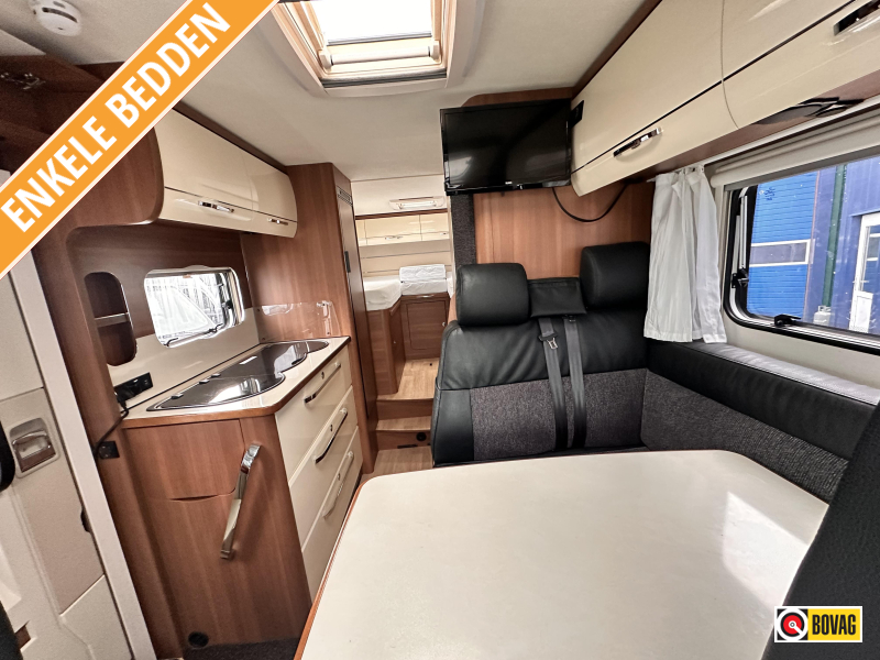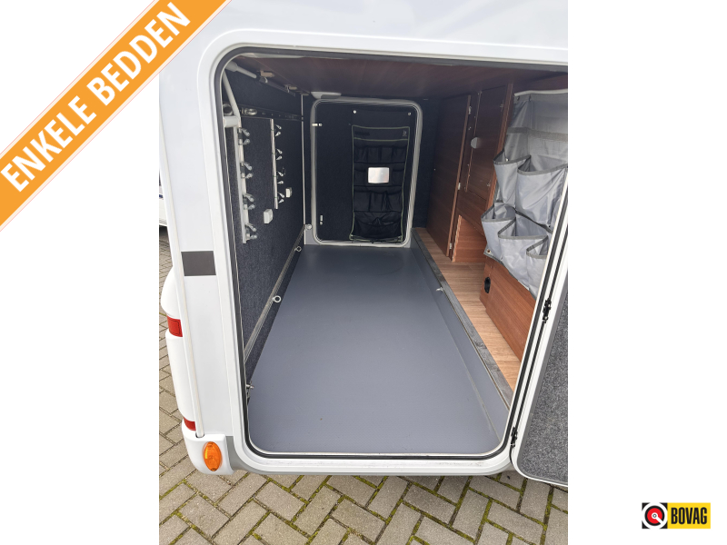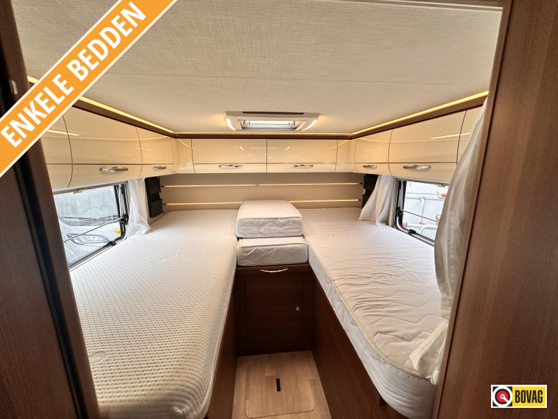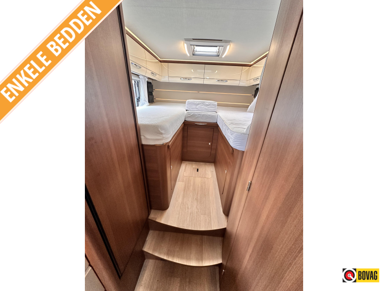 - Achterin twee comfortabele enkele bedden (met optie om samen te voegen tot groot bed)